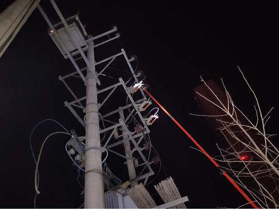 到達現(xiàn)場后,馬工邊聽現(xiàn)場電工說明情況,邊勘察現(xiàn)場,對柱上變壓器的跌落保險進行檢查,確認安裝位置。